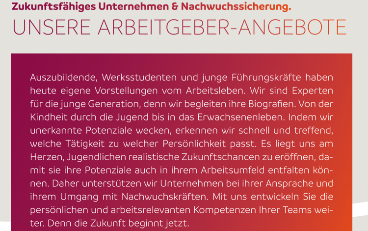 Unsere Mission: Junge Menschen an die richtigen Stellen bringen, damit sie ihre Potenziale entfalten – und Unternehmen langfristig starke Nachwuchskräfte gewinnen.